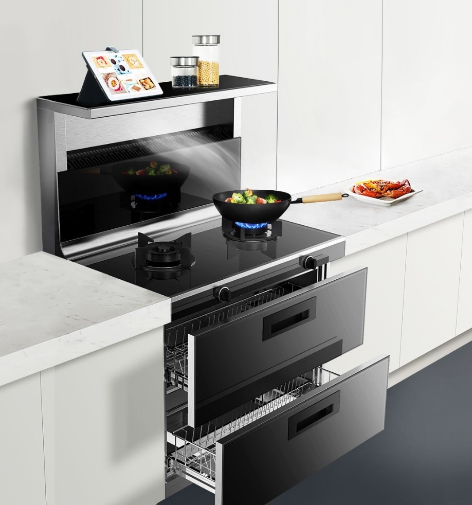 北斗星C2采用三合一設(shè)計,吸油煙機+燃?xì)庠?消毒柜,將置物、吸煙、烹飪、消毒、換氣等功能完美融為一體,有效節(jié)約廚房空間。