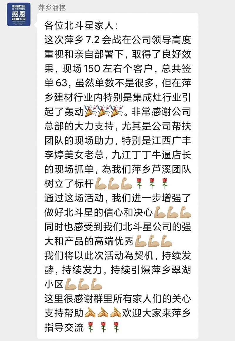 “買集成灶就是買健康”!本次萍鄉團購活動圓滿收官,證明了市場以及消費者對北斗星集成灶的信賴和喜愛,更是對北斗星集成灶,每一件都是爆款的重要戰略有力驗證。