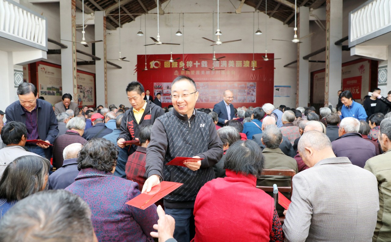 造福鄉(xiāng)梓,回報(bào)鄉(xiāng)情。“愛蓮美麗鄉(xiāng)村基金會(huì)”是由萬豐集團(tuán)董事局陳愛蓮主席響應(yīng)中央提出建設(shè)“美麗中國”的號(hào)召,個(gè)人出資成立的,是浙江省第一個(gè)支持社會(huì)主義新農(nóng)村建設(shè)的非公募基金。渡皇山村年滿60歲以上的老人、入學(xué)的兒童、考入大學(xué)的學(xué)子以及喜結(jié)良緣的夫妻,每年都能享受到“長壽金”“學(xué)優(yōu)金”“幸福金”。自2011年基金會(huì)成立以來已累計(jì)發(fā)放基金約1000萬元。