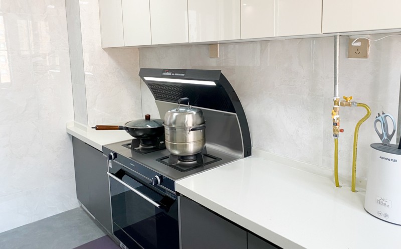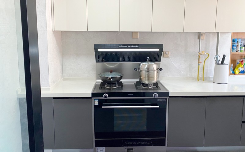 說起當初,剛開始裝修廚房的時候,秦女士希望自己未來的廚房是干凈的,無油煙的。廚房面積不太大,她想著,要是廚電能合理布局,盡可能節省空間就好了。