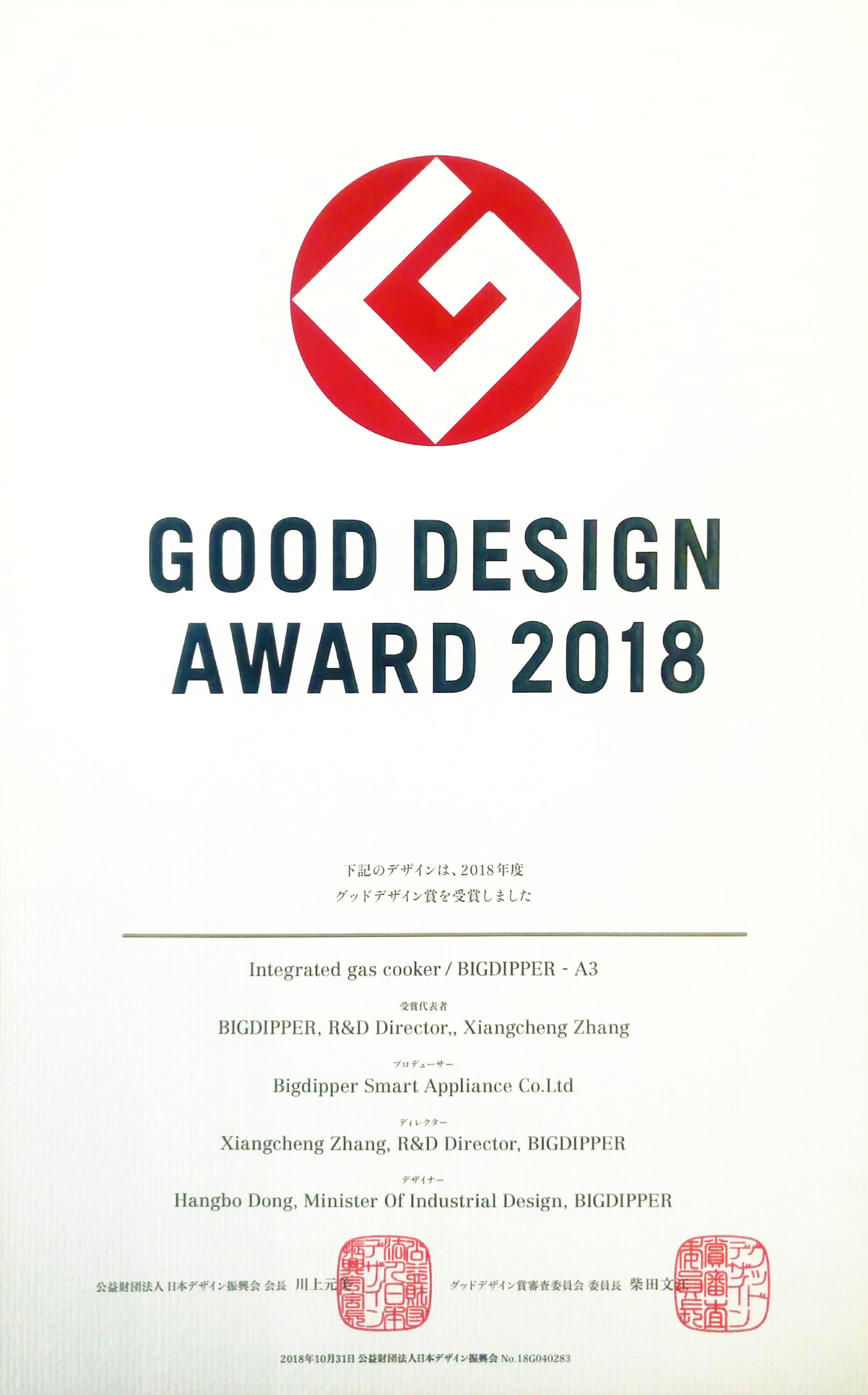 北斗星榮獲全球四大工業(yè)設(shè)計(jì)獎(jiǎng)項(xiàng)之一的國際“G-Mark設(shè)計(jì)獎(jiǎng)”,成為集成灶行業(yè)首個(gè)獲此殊榮的品牌,G-Mark素有“東方設(shè)計(jì)奧斯卡獎(jiǎng)”之稱。