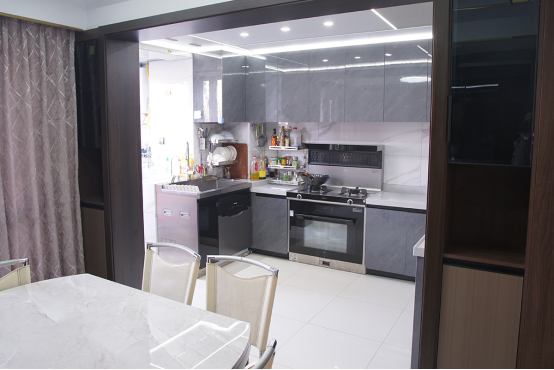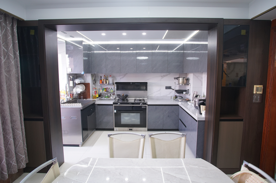 “廚房自從重裝后,有了這款集成灶,多大的油煙都能被快速吸凈,再也不用擔心下廚做菜,油煙跑得滿房間都是了。”在改造過程中,徐大姐毫不猶豫的將廚房的隔斷門都省了,直接做成了開放式,日常下廚做菜,再也沒有油煙的困擾。
