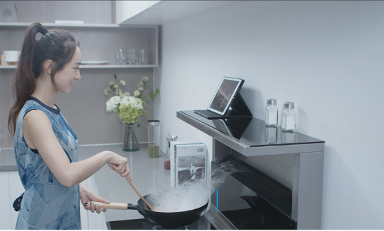 順便提一下它的煙灶聯(lián)動功能。顧名思義,煙灶聯(lián)動就是在啟動燃?xì)庠畹乃查g,煙機同步開始排煙。這樣就能避免烹飪中手忙腳亂來不及開油煙機的尷尬。