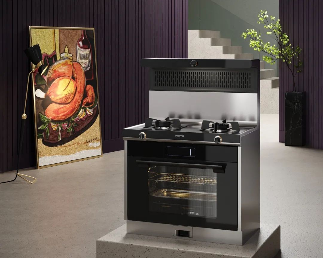 北斗星集成灶煙機部分,巡航風量可高達20m³/min,500Pa靜壓大吸力,油煙還沒來得及擴散便被煙機吸走,油煙不過臉。同時,搭載了智能巡航增壓技術,實時檢測,完全不用擔心廚房煙油問題。
