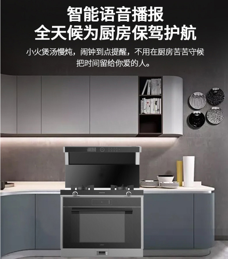 超級語音智能集成灶,內置智能芯片,不僅能與您進行智能語音對話,聽從您的指示,完成美食制作,還能進行實時監測,提供智能語音播報,全天候為廚房保駕護航。