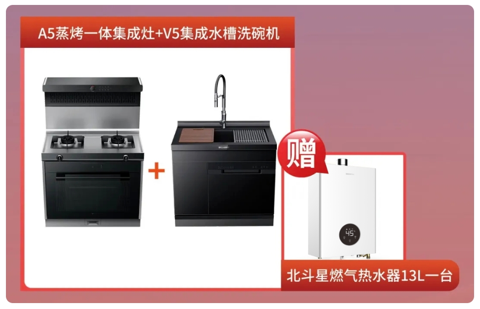 此外,北斗星傾情推出一對廚房搭檔——A5蒸烤一體集成灶+V5集成水槽洗碗機,高顏值+高品質,都能輕松滿足用戶廚房的多功能需求及空間優化,1㎡打造理想廚房。
