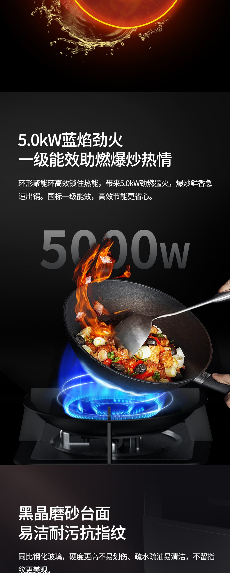 5.0kW藍(lán)焰勁火,一級(jí)能效助燃爆炒熱情